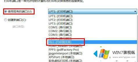 2、选择“添加本地打印机”点击“使用现有的端口”下方的“file:(打印到文件)”。