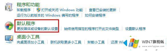 2、选择“程序”打开“默认程序”。