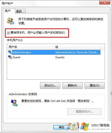 2、选择默认登陆的用户名,取消勾选要使用本机,用户必须输入用户名和密码,应用确定。