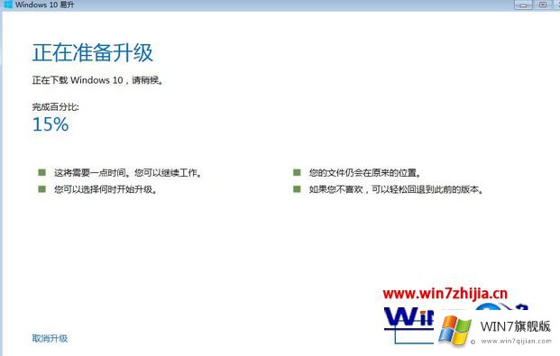 6、进入“正在准备升级”过程,先执行下载Windows10过程,需要一点时间;