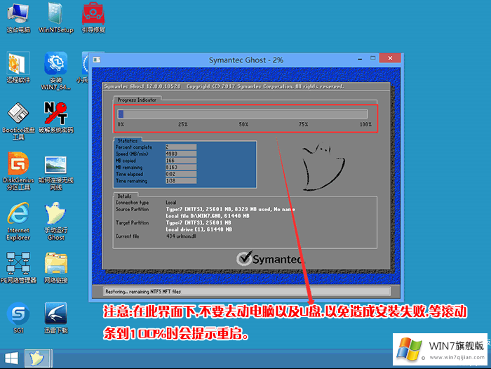 2、点一下刚开始后,等候释放出来GHO程序安装,电脑便会自动重启电脑。